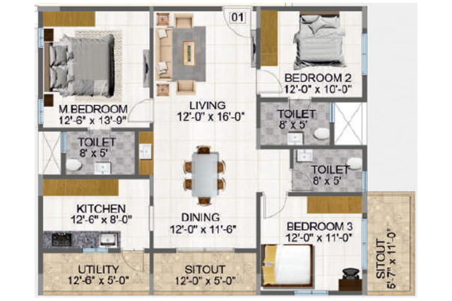 Spread across 1.96 Acres, the project features 1 boutique block with just 119 thoughtfully designed 3 BHK residences, ranging from 1885 to 2000 sq. ft., that are Vaastu-compliant and planned to maximize natural light and ventilation.