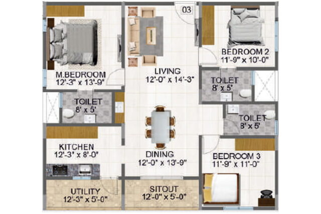 Needs 3 Project 168 offers a grand entrance and airy lobby that lead to bright homes with spacious rooms, natural light, a functional kitchen, and a large balcony for quiet mornings and family moments.