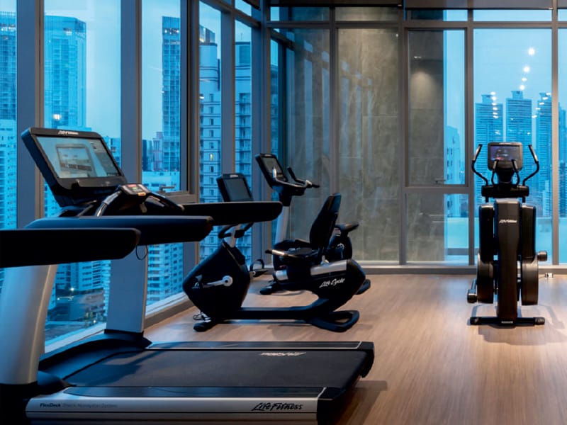 Enjoy full workouts at the fully equipped gym.